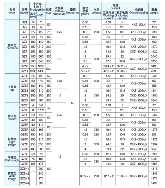 GZ型电磁振动给料机应用于矿山、冶金、建材、化工、粮食等行业,用于把块状、颗粒状及粉状物料,从贮料仓或漏斗中均匀、连续或定量地给到受料装置中去。